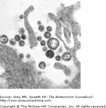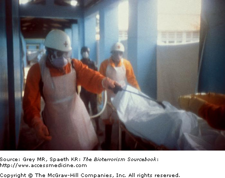 Extreme contagiousness, virulence, and mortality rates make VHFs among the most feared diseases of humankind (Fig. 13–1). Since the first documented case of a Marburg in 1967, VHFs have been identified all over the world and have observable naturally occurring outbreaks. No documented use of VHFs as bioweapons has yet occurred; however, it is commonly accepted that the United States, Russia, and probably other governments have successfully developed weaponized versions of VHFs. What is known about the epidemiology, transmission, clinical presentation, and prevention of VHFs is therefore based on naturally occurring epidemics and bioweapons research.