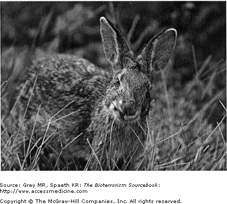 A gram-negative coccobacillus, tularemia was first identified in 1911 by a scientist investigating an outbreak of what was initially thought to be bubonic plague in Tulare County, California. The disease has multiple means of transmission, and waterborne epidemics were seen in Europe and the Soviet Union in and around World War II (WWII). It has been suggested that the Soviet outbreak, which occurred at the Eastern front during WWII, was a result of a deliberate biological attack by the Russians. In fact, tularemia has been a favorite agent for bioweapons research since the 1930s. In 1969, the World Health Organization (WHO) estimated that 10 kg (20 lb) of aerosolized F. tularensis could infect 50,000 people, killing approximately 4,000. These numbers may be outdated because antibiotic and vaccine-resistant strains of weaponized tularemia—reported to have been developed at Biopreparat—would be far more deadly.