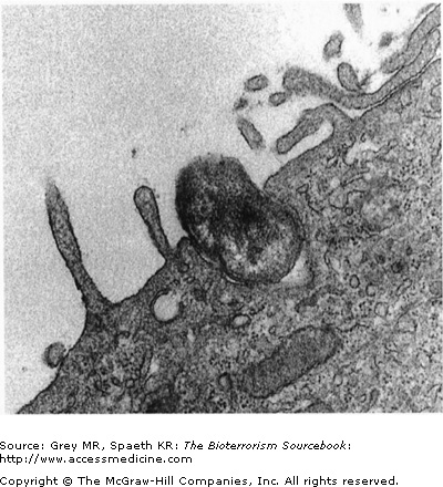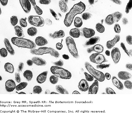 The mortality rate in untreated typhus is approximately 50%, whereas fatal cases are rare with treatment. Rickettsia are obligate intracellular bacteria. They survive for long periods in lice feces. The ID50—the dose required to cause infection in 50% of those exposed—is remarkably low. Just a few organisms are sufficient to cause disease. The hardiness of the microbe and its low ID50 make it a viable candidate for use as a biological weapon.