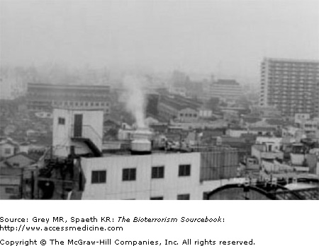 After several failed attempts to release botulinum toxin in a Japanese government building, the worldwide religious cult based in Japan, Aum Shinrikyo, which preaches an apocalyptic message and whose name means Supreme Truth, levied a successful attack.