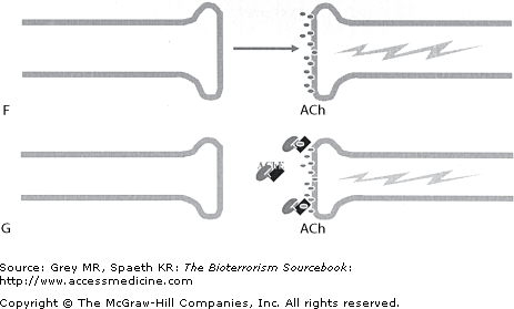 The extent and severity of the consequences from an exposure are dependent on the particular nerve agent used. VX is by far the most potent of the nerve agents currently known to exist (Table 25–3).
