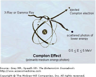 Radiation injuries result from three basic methods of exposure: irradiation, external contamination, and internal contamination. The location and severity of injury are influenced by these routes of exposure. Irradiation is radiation exposure from an external source without physical contact with the body. Irradiation from x-rays, gamma rays, neutrons, or alpha or beta particles may be non-penetrating (affecting only the skin) or penetrating (affecting areas deeper than the skin). The depth of penetration is a function of the energy contained within the electromagnetic wave or radiation particle. Decontamination is unnecessary with irradiation so HCWs may focus their attention on acute medical issues. External contamination occurs when radionuclides come into contact with external body surfaces. Adequate decontamination is needed with external contamination to avoid exposure to care providers. These particles are transferable to hands, clothing, and other items, and can inadvertently add to the patient’s body burden if allowed to be inhaled, ingested, or entered into open wounds. Finally, internal contamination results from the inhalation, ingestion, injection, or intrusion through wounds of radionuclides. Once inside the body, they emit damaging radiation to local tissues and organs.